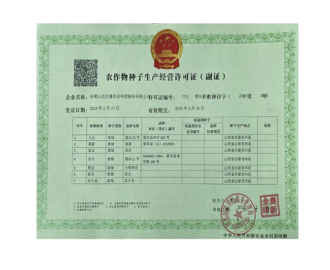 • 農(nóng)作物種子生產(chǎn)經(jīng)營許可證(副證)